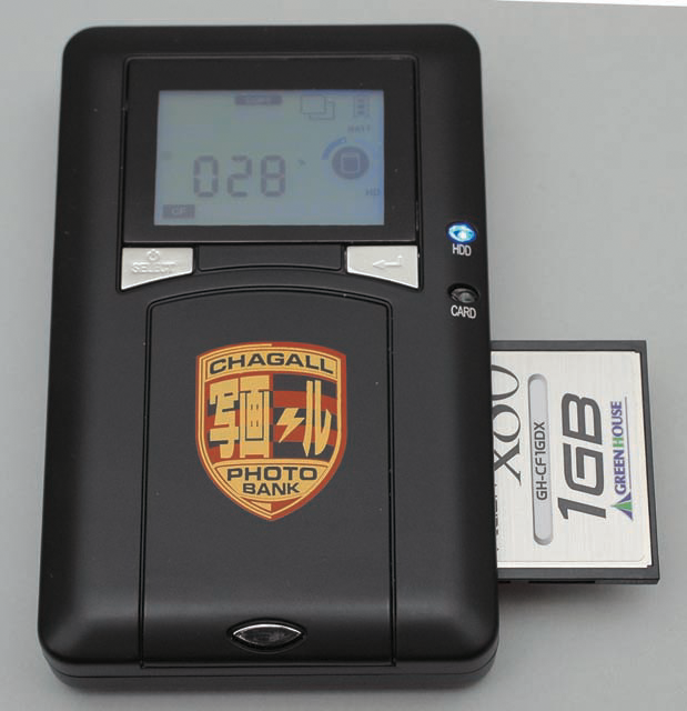 「裸族」シリーズで有名なセンチュリーのヒトがアメリカで見つけた商品が「フォトバンク写画~ル」。基本は2.5インチのHDDケースだけど、CFやSDカードなどを差すスロットがあり、ボタン一発でメディアのデータをHDDに移せる。